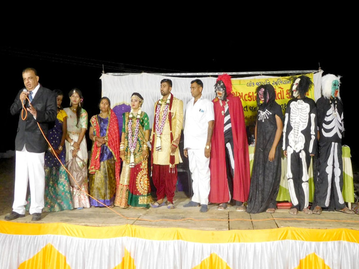 તયારે આજે જે થયું એ ખરેખર અદ્ભૂત થયું હતું. કારણ કે આ ગામમાં સ્મશાનમાં લગ્ન બાદ નવદંપતીને ઉતારો આપવામાં આવ્યો હતો. બાદમાં DJના તાલે ભૂતડા સાથે ફુલેકું પણ કાઢવામાં આવ્યું હતું અને પછી ઉપસ્થિત લોકોમાં વૈજ્ઞાનિક માનસિકતાનાં દર્શન જોવા મળ્યાં હતાં. વિગતે વાત કરીએ તો રામોદના રાઠોડ પરિવારની જાન ગોંડલ તાલુકાના મોવિયા ગામે સુરેશ દાનાભાઇના ઘરેથી લગ્ન સમારંભ સંપન્ન કરી પરત આવતાંની સાથે નવદંપતીનો ઉતારો ગામના સ્મશાનમાં રાખવામાં આવ્યો હતો. સાથે જ DJના સંગાથે જાથાના લોકોએ ભૂતડાના કોસ્ચ્યૂમ ધારણ કરીને ફુલેકામાં આવ્યા હતા અને પછી જે માહોલ બન્યો હતો એ ખરેખરે કંઈક અલગ જ હતો. તેની રોમાંચકતા પણ ક્યાંક ફૂલી ન સમાય એવી હતી.