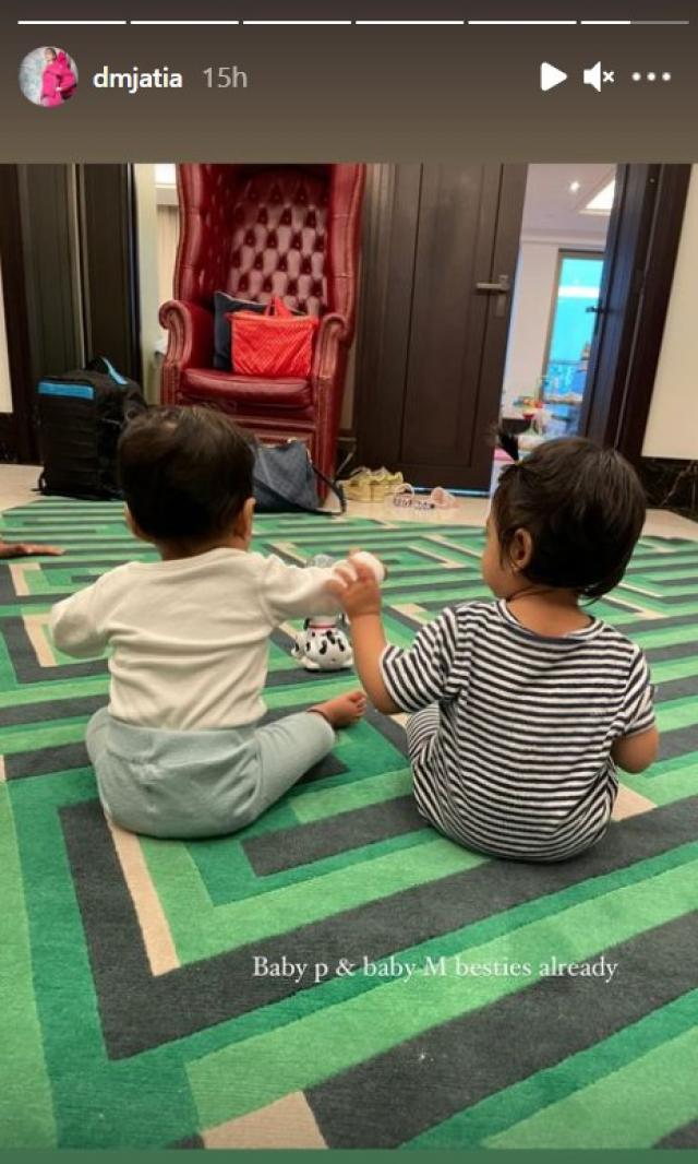 હાલમાં જ અંબાણી ખાનદાનની વહુ શ્લોકા મહેતાની બહેન દિયાએ એમની ઇન્સ્ટાગ્રામ સ્ટોરી પર એક ફોટો શેર કર્યો હતો. એ ફોટામાં ફર્શ પર બે બાળકો રમતા દેખાઈ રહ્યા છે. ફોટાના કેપ્સનમાં લખ્યું છે કે બેબી P અને બેબી M પહેલેથી જ સારા મિત્રો. જો કે આ ફોટામાં બન્ને બાળકોનો ચહેરો નથી દેખાઈ રહ્યો. પણ પૃથ્વી અંબાણી સાથે જે બાળકી રમતી દેખાઈ રહી છે એ એમની માસીની દીકરી છે.